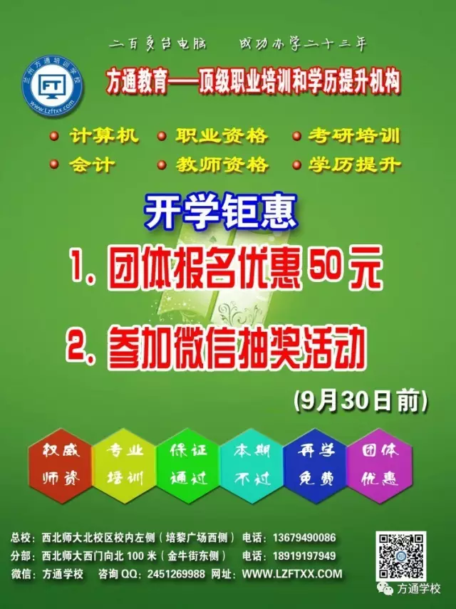 4、关注方通学校微信公众号(方通学校),参与九月份抽奖活动,获取更多优惠。