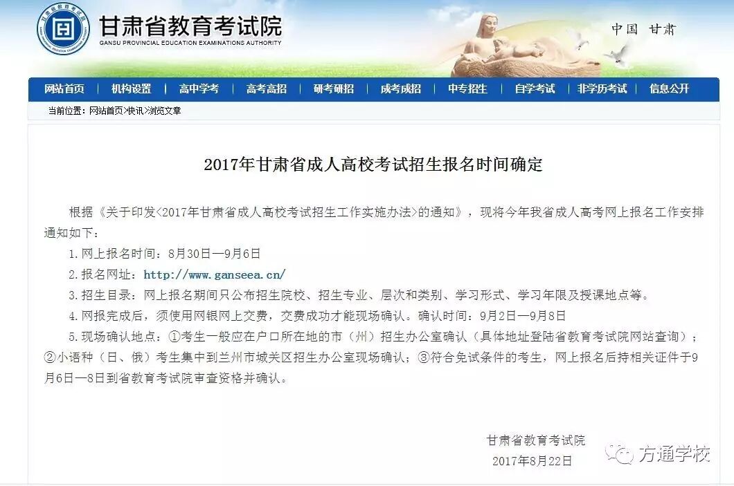 2017年成人高考报名最后五天,我校为西北师大、兰州理工大、兰州工业学院、甘肃中医药大学学校函成教直属教学点,专业齐全、轻松拿证,有需要的朋友请抓紧报名,错过最后五天只能等2018年,电话/微信:13679490086,报名地址:西北师大北校区院内左侧或师大西门向北100米。